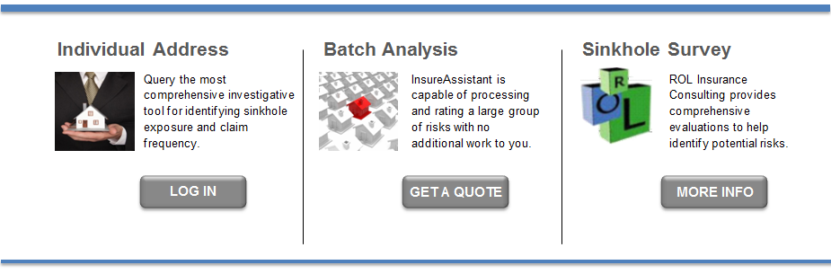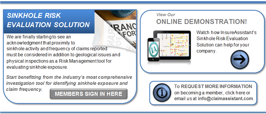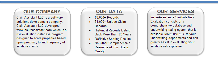 InsureAssistant.com and the Sinkhole Risk Evaluation Solution are owned and operated by Claim Assistant, LLC dba ClaimAssistant.com. To view our privacy policy,